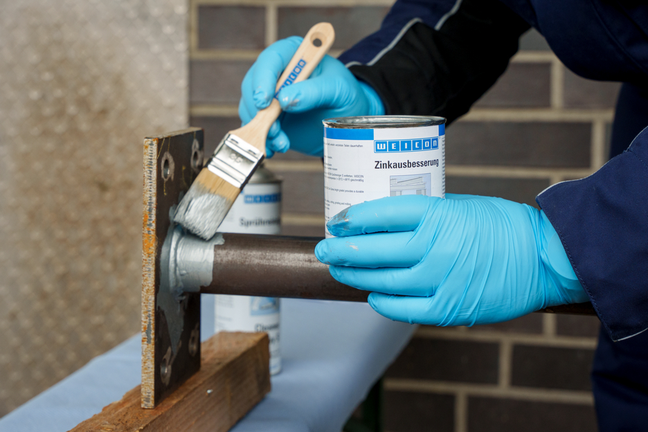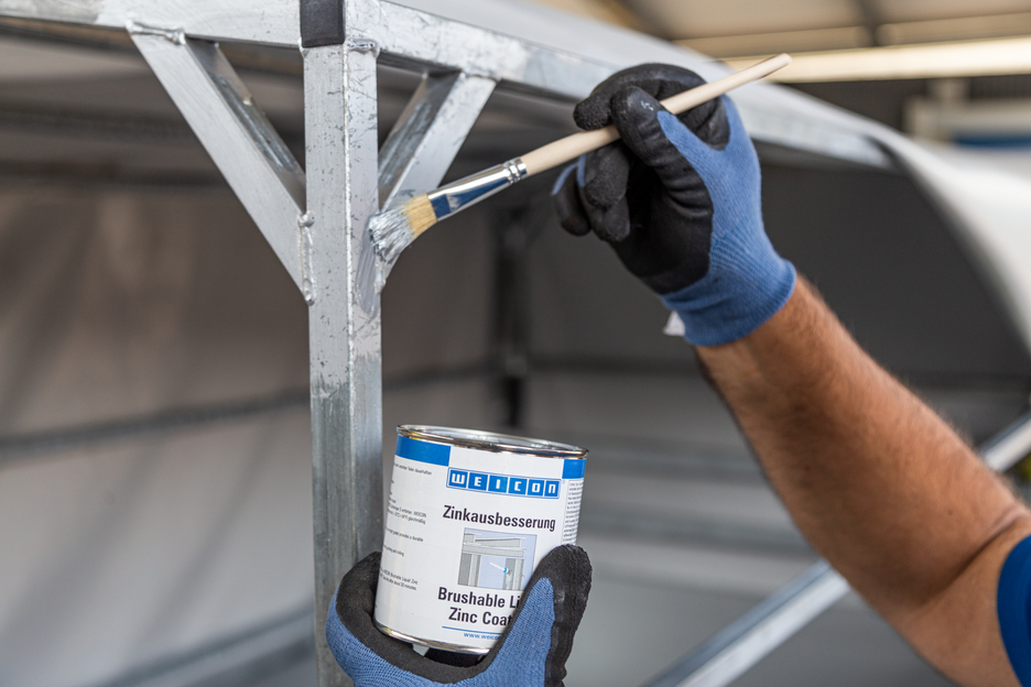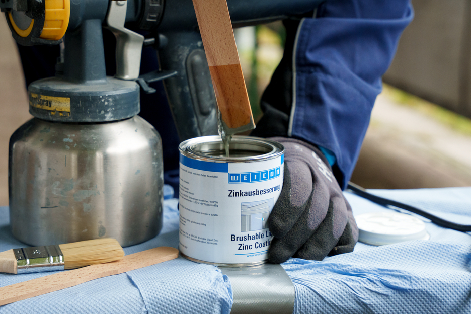 Acoperirea lichida pensulabila de zinc WEICON ofera o protectie activa impotriva coroziunii tuturor suprafetelor metalice si este disponibila intr-o nuanta de culoare apropiata celei rezultate prin galvanizarea la cald. Prin aplicarea acoperirii de zinc, fulgii de pigmenti metalici se asaza paralel cu substratul insa in cateva straturi intercalate (asa numitul efect de „sindrila“). Chiar si in cazul in care stratul aplicat este subtire, se obtine o protectie anticoroziva. in acest fel suprafata este protejata timp mai indelungat fata de patrunderea umezelii. Datorita efectului electrochimic se obtine simultan si o protectie optima impotriva coroziunii.