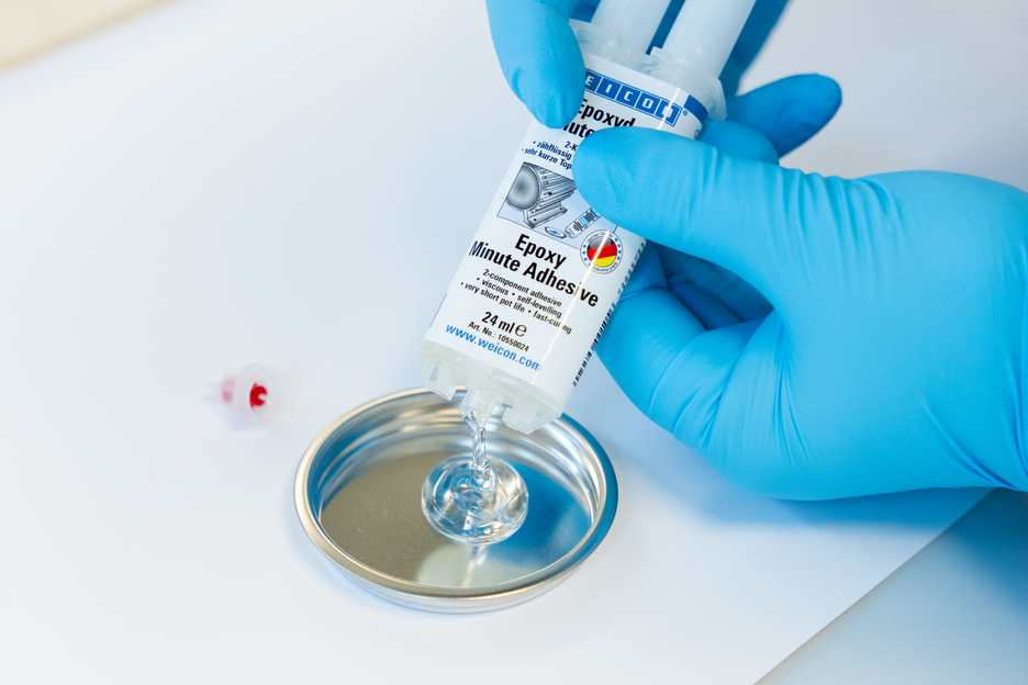 Adezivul WEICON Epoxy Minute este un adeziv epoxidic bicomponent cu aplicare universală. Adezivul este rezistent la temperaturi ridicate de până la +180 °C, fiind vâscos și autonivelant. Are un timp de lucru foarte scurt și se întărește rapid. Adezivul WEICON Epoxi Minut poate fi utilizat pentru numeroase materiale precum metalul, plasticul, materialele ranforsate cu fibra, ceramica, sticla, piatra și lemnul. Adezivul transparent este potrivit pentru aplicații artizanale sau proiecte DIY solicitante. De asemenea, poate fi utilizat în amenajarea expozițiilor și a magazinelor, precum și pentru lucrări de construcție și asamblare.