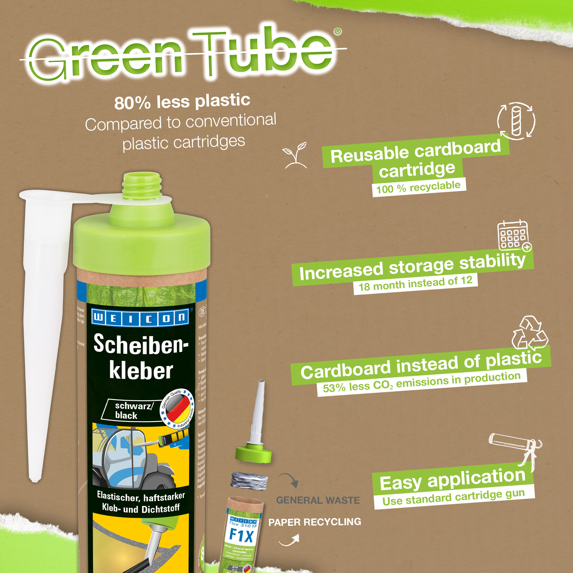 Adezivul WEICON de montaj sticlă este un adeziv și etanșant unicomponent elastic, păstos, pe bază de MS polimer special conceput pentru montajul sticlei și a geamurilor. De exemplu adezivul poate lipi geamurile din față, spate, lateral la camioane industriale, mașini agricole și utilaje de construcții. Este potrivit de asemenea pentru aplicația în producția de mobilier precum și pentru diverse construcții în grădină sau din arhitectura peisagistică. Adezivul de montaj sticlă are o înaltă aderență pe multe materiale și se întărește cu umiditatea din aer. Adezivul prezintă o rezistență excelentă la îmbătrânire și o bună stabilitate UV. Poate umple interstiții, nu are miros, nu conține silicon, izocianați, halogeni și solvenți.