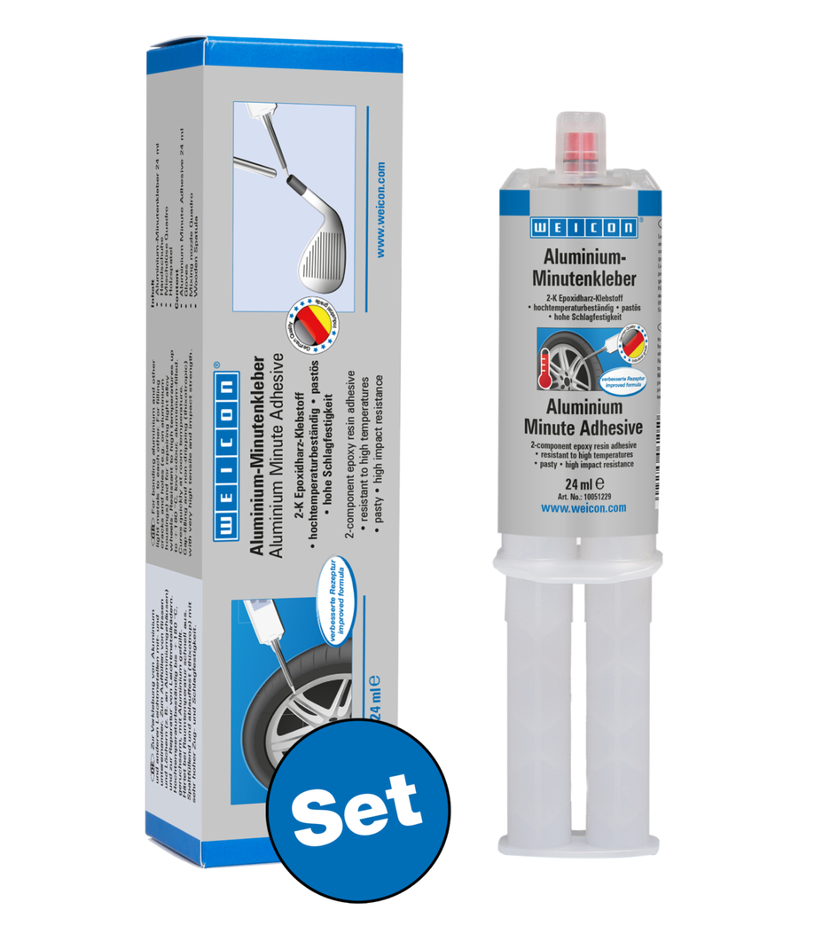 Adeziv pentru lipirea aluminiului și a altor metale ușoare între ele. WEICON Adeziv rapid cu Aluminiu poate fi utilizat pentru umplerea fisurilor și găurilor, de exemplu din carcasele din aluminiu și pentru repararea jantelor din aliaj ușor. WEICON Adeziv rapid cu Aluminiu este un adeziv epoxidic bicomponent, cu miros abia perceptibil, cu pulbere de aluminiu. Este rezistent la temperaturi ridicate de până la +180 °C și se întărește rapid la temperatura camerei. După întărire, adezivul poate fi prelucrat mecanic (șlefuire, găurire, frezare). Adezivul rapid cu Aluminiu are capacitatea de a umple spalturi, nu curge (este tixotrop) și prezintă după întărire o rezistență înaltă la tracțiune și impact. Pentru a obține o aderență optimă, suprafețele care se lipesc ar trebui să fie uscate și fără urme de grăsimi sau murdărie. Asperizarea sau sablarea suprafețelor înainte de curățare îmbunătățește aderența.