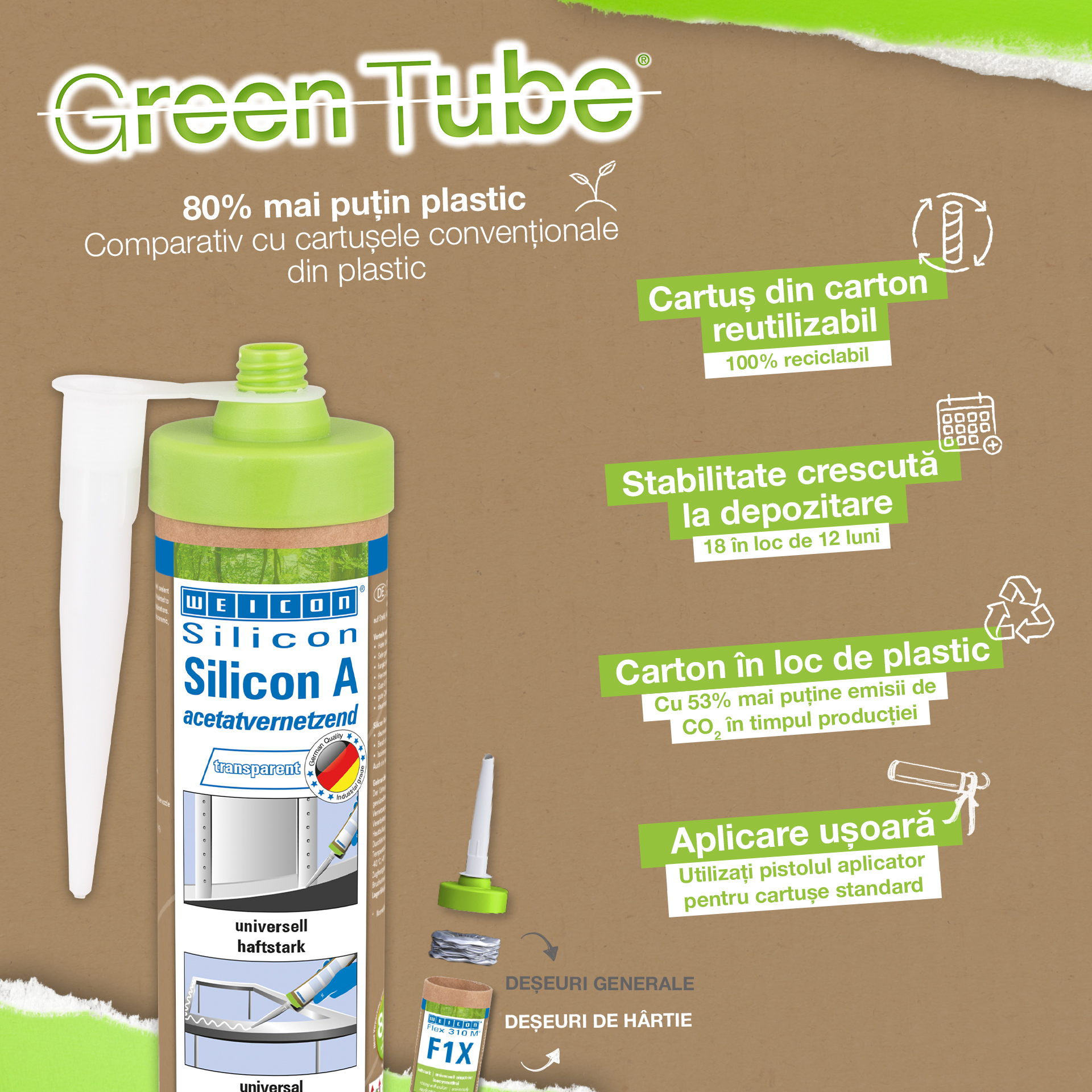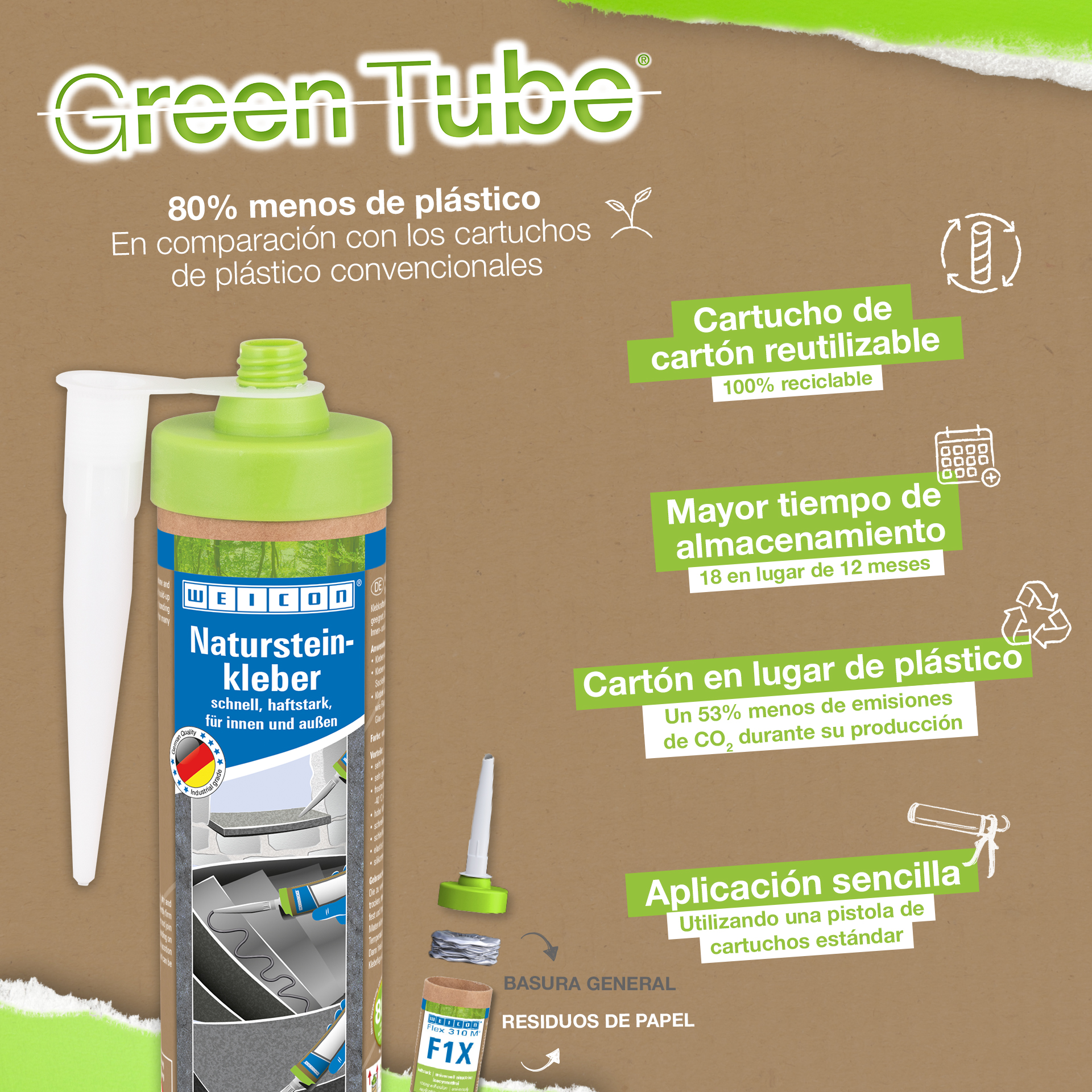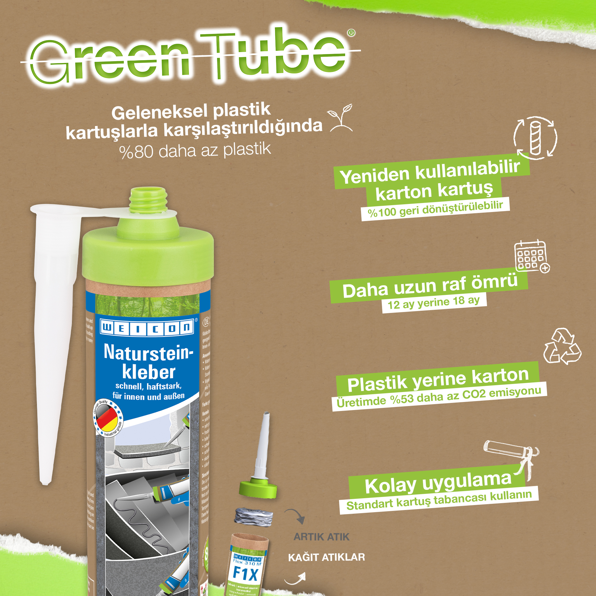 Adezivul WEICON pentru piatră naturală este un adeziv puternic pentru fixarea pietrei naturale, pietrei decorative și a ceramicii Datorită aderenței sale inițiale foarte ridicate și a creșterii rapide a puterii adezive, lipirea este posibilă chiar și pe suprafețe verticale, cum ar fi pereții. Adezivul pentru piatră este potrivit pentru multe aplicații de interior și exterior. Este rezistent la îngheț, are o rezistență la temperaturi ridicate de la -40°C la +90°C, precum și rezistență ridicată la intemperii și UV. Adezivul pentru piatră naturală se întărește rapid și are o rezistență finală foarte mare. După întărire, adezivul poate fi șlefuit și rămâne elastic pentru a compensa mișcările. Adezivul pentru piatră nu conține silicon, izocianați, halogeni și solvenți. Poate fi utilizat într-o mare varietate de aplicații, de exemplu, pentru lipirea pervazurilor de ferestre, a plăcilor, a plintei, a mulurilor decorative sau a treptelor de scări. Adezivul pentru piatră naturală WEICON aderă foarte bine la o mare varietate de materiale, cum ar fi lemnul, materialele pe bază de lemn, materialele plastice, metalele, sticla și substraturile minerale. Este disponibil în culorile gri și alb.