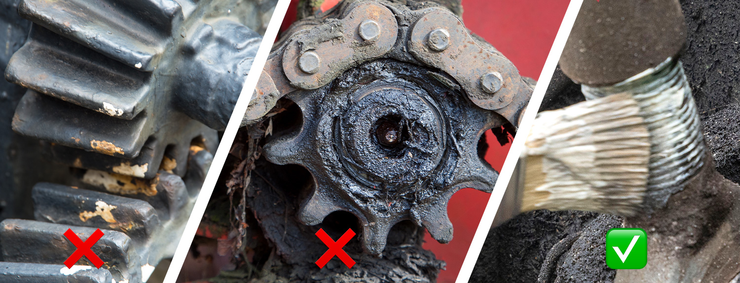 Înainte de a aplica un lubrifiant nou, stratul vechi trebuie îndepărtat complet. Numai atunci noul lubrifiant își poate atinge potențialul complet.