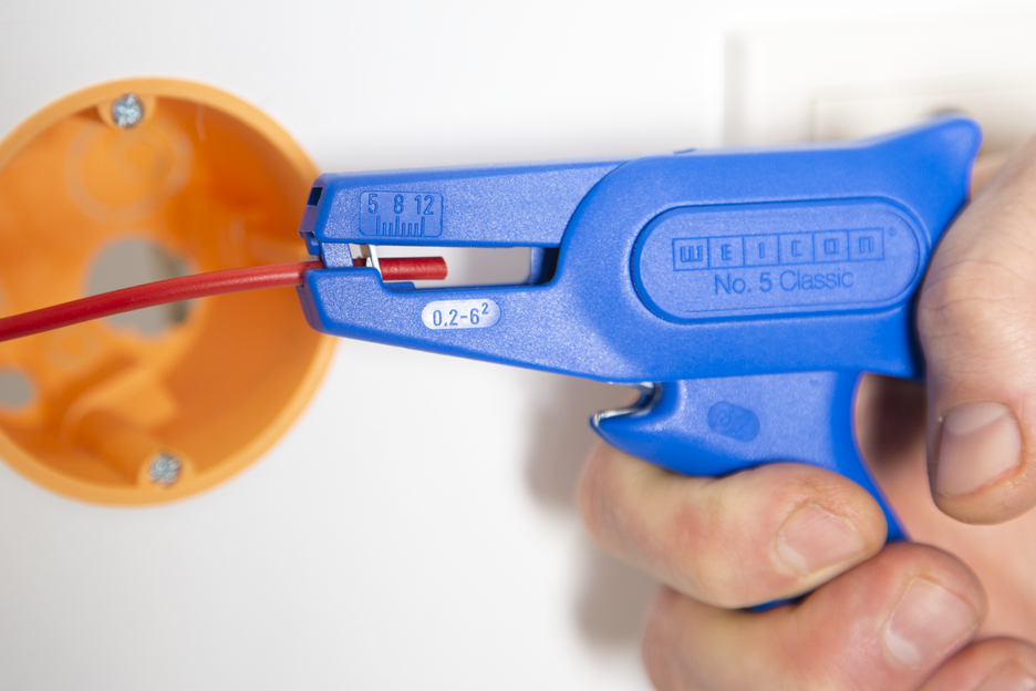 Clește de dezizolat automat pentru toți conductorii uzuali lițați sau solizi (0.2 – 6.0 mm² / 24 - 10 AWG)|Cuter lateral integrat ușor accesibil, până la 2 mm Ø|Lucrări precise datorită scalei de lungime optică (5 -12 mm)"