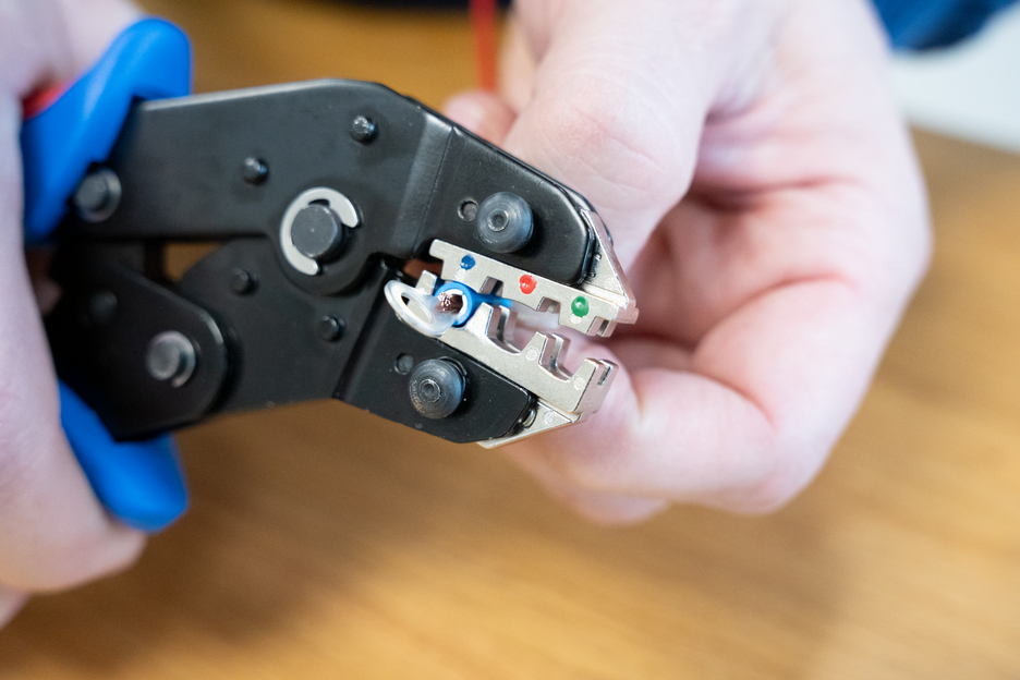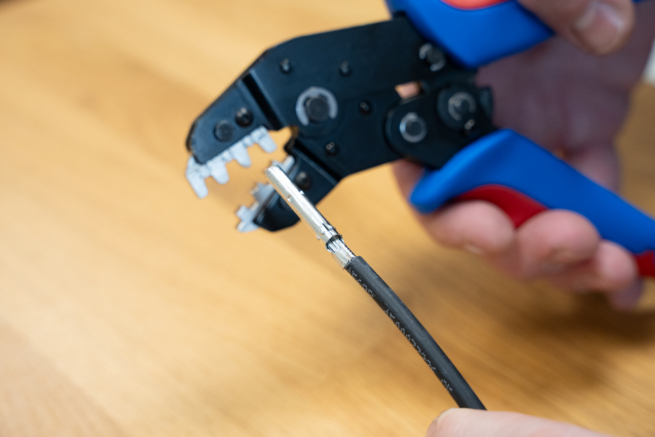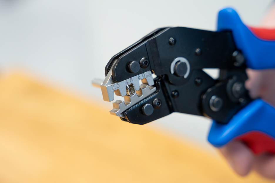 MULTI-CRIMP was developed for the process-safe crimping of various electrical connectors. The crimping tool has a ratchet mechanism with a blocking device to ensure a consistently high crimping quality and results that can be precisely repeated. The mechanism only opens the tool when the crimping process is complete. An emergency release has also been integrated into the handle, which opens the crimping tool in the event of misuse. The accurate eccentric setting ensures a high crimping quality thanks to the precisely adjustable crimping force. With the Multi Change System, the module pairs of the crimping tool can be exchanged quickly and easily, as needed. The change system, which requires no additional tools, ensures that the modules can be installed and removed fast. The standard version of the crimping tool is equipped with three pairs of modules made of high-quality steel. One pair for MC4 connectors with cable cross-sections of 2.5 mm², 4 mm² and 6 mm² (14-10 AWG). Another pair of modules for insulated wire end ferrules from 0.25-6 mm² (AWG 24-10) and a third module for insulated cable lugs from 0.25-2.5 mm² (AWG 24-14). The three pairs of modules are stored safely and protected from dust in a small plastic box. The 2-component handles of the MULTI-CRIMP tool ensure non-slip and ergonomically friendly handling with maximum force transmission. The tried and tested “ice-crack design” was used, which ensures a comfortable feel. The integrated eyelets on the handles can be used to attach a safety catch.