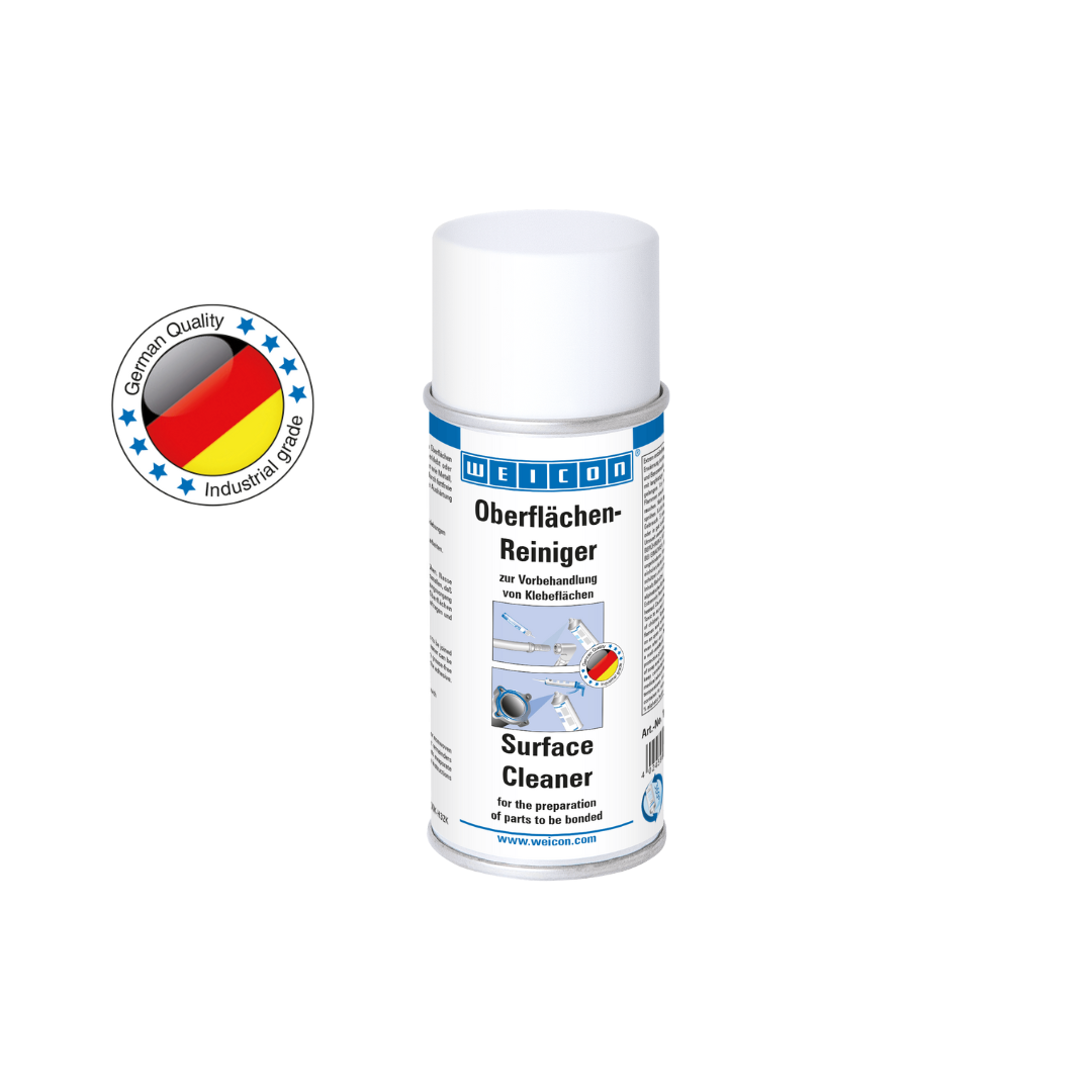WEICON Spray curatarea suprafetelor este utilizat pentru curatarea si degresarea suprafetelor care urmeaza sa fie imbinate si lipite cu adezivii si etansantii WEICON. WEICON Spray curatarea suprafetelor poate fi aplicat pe materiale precum metalul, sticla, ceramicele si majoritatea materialelor plastice si se evapora fara reziduuri. Spray curatarea suprafetelor poate fi utilizat de exemplu, pentru curatarea si degresarea pieselor de masini in timpul lucrarilor de intretinere.