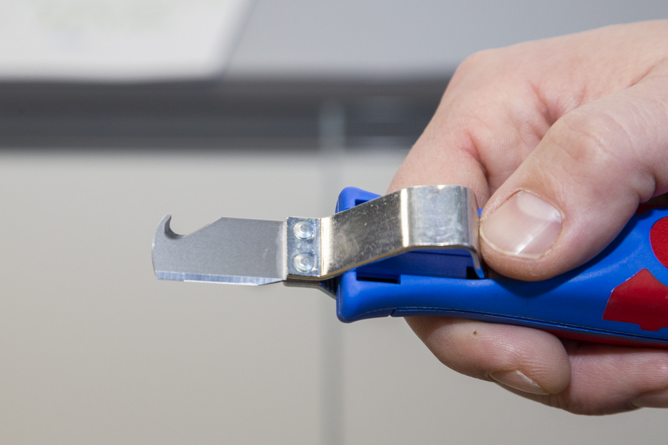 cu maner bicomponent ce include lama tip carlig si capac de protectie, interval de lucru 4 - 28 mm Ø