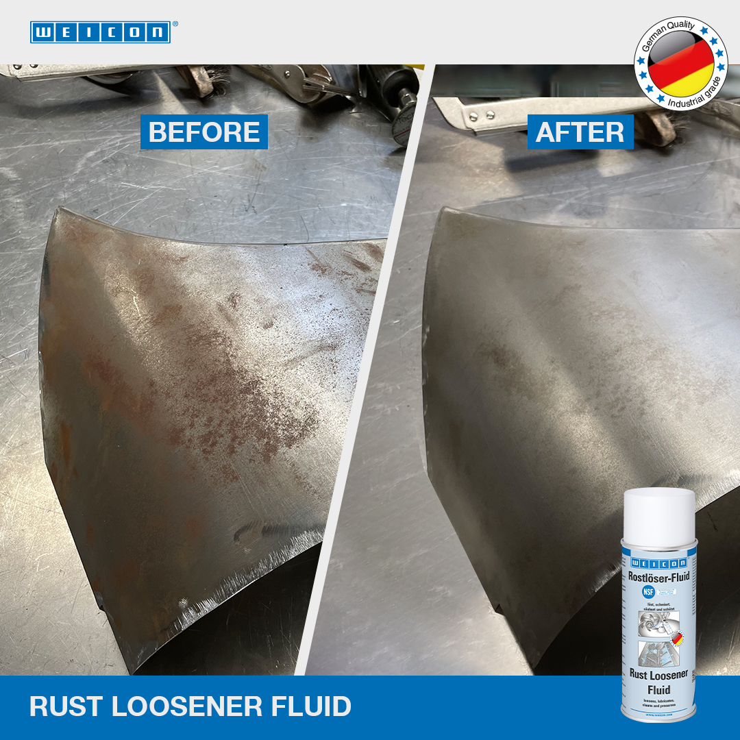 Dizolvare rugina Fluid este un produs fiziologic inofensiv cu certificare NSF ceea ce permite utilizarea acestuia in industria alimentara si a bauturilor, in cea farmaceutica si cosmetica Dizolvare Rugina Fluid deblocheaza conexiuni filetate ruginite si oxidate, bolturi, parghii, articulatii si balamale precum si mecanisme gripate. Gratie propietatilor de capilaritate excelente, Dizolvare rugina Fluid poate patrunde si in cele mai mici spatii. Asigura functionabilitatea pieselor mecanice si a contactelor electrice. Spray-ul protejeaza pe termen lung impotriva coroziunii si oxidarii. Curata si protejeaza suprafetele metalice, piesele mecanice si sistemele electrice . Datorita formulei sale speciale si certificarii NSF, WEICON Dizolvare Rugina Fluid poate contribui la imbunatatirea sigurantei si sanatatii la locul de munca.