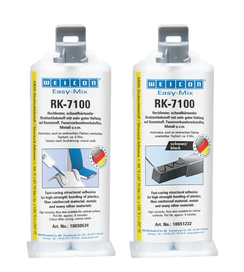 Adezivul acrilic structural WEICON Easy-Mix RK-7100 poate fi utilizat pentru a lipi numeroase materiale, cum ar fi materialele plastice, metalele și ceramica între ele, cu o rezistență ridicată la tracțiune, forfecare și exfoliere. Este în mod deosebit recomandat pentru lipiri structurale de o înaltă rezistență. Adezivul este foarte vâscos și prin urmare poate fi aplicat și pe suprafețe verticale. WEICON Easy-Mix RK-7100 este un produs universal, putând fi utilizat de exemplu în tehnologia maselor plastice, construcții metalice, de caroserii și vehicule, construcția de mașini, ingineria electrică, realizarea de matrițe și modele, precum și în construcții specifice târgurilor și expozițiilor Pistolul aplicator Easy-Mix D 50 este necesar pentru aplicarea produselor Easy-Mix în cartușe de 50 ml.