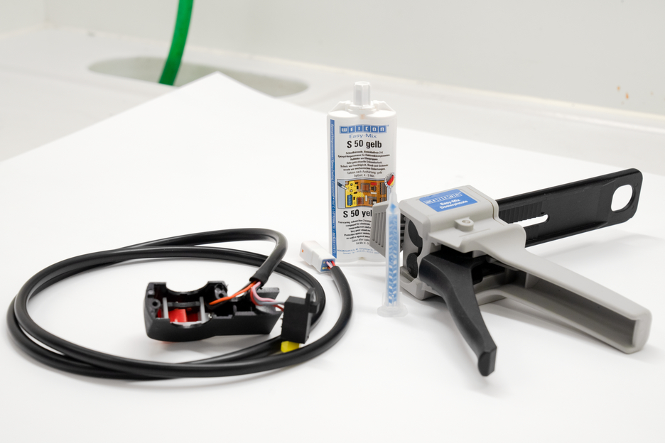 WEICON Easy-Mix S 50 galben este un compus de turnare cu o reactivitate ridicată. Poate fi utilizat ca și adeziv datorită aderenței inițiale înalte precum și timpului scurt de întărire. Acest sistem pe bază de de rășină epoxidică rezistă la temperaturi ridicate de până la +180 °C, este vâscos, autonivelant, se întăreste rapid și rezistă la impact după întărire. Compusul de turnare prezintă un timp scurt de lucru de 4-5 minute. Acest adeziv compozit aderă foarte bine la o mare varietate de suprafețe, cum ar fi metalul, materialele plastice, plasticul ranforsat cu fibră de sticlă, lemnul, sticla, ceramica și piatra. Compusul de turnare poate fi utilizat în ingineria electronică pentru protejarea componentelor electronice, a semiconductorilor și a ansamblurilor. Acesta protejează componentele împotriva umezelii, prafului și murdăriei precum și împotriva sarcinilor mecanice. Easy-Mix S 50 galben este potrivit pentru aplicații în multe domenii diferite, cum ar fi lucrări de injecție și încapsulare în ingineria electrică și în industria electronică, pentru turnarea conexiunilor de cabluri, pentru aplicații în tehnologia de izolare, în construcțiile metalice, în construcția de rezervoare și aparate, în fitinguri și în sistemele de ventilație și de aer condiționat. Datorită culorii sale distinctive galbene, Easy-Mix S50 galben facilitează controlul vizual. Compusul de turnare este aplicat cu ajutorul sistemului Easy-Mix ușor de utilizat. Pistolul aplicator Easy-Mix D 50 este necesar pentru aplicarea produselor Easy-Mix în cartușe de 50 ml.
