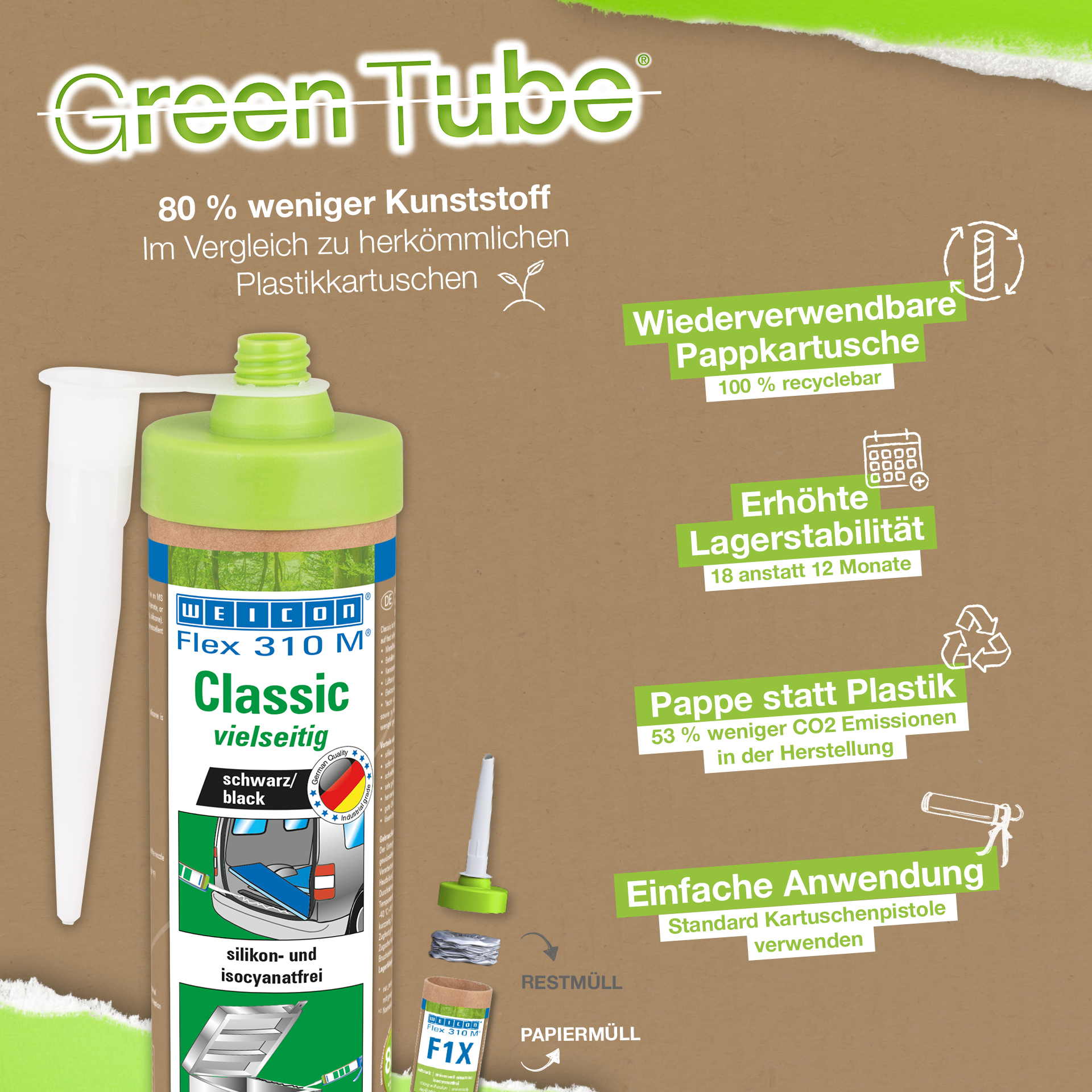 Für den Camper-Ausbau habe ich sonst immer die klassische Kartusche genutzt, nun wollte ich einmal die Variante mit der Pappkartische ausprobieren und es klebt genauso gut. Ich finde es eine gute und nachhaltige Alternative und werde in Zukunft auch die Pappkartusche kaufen.