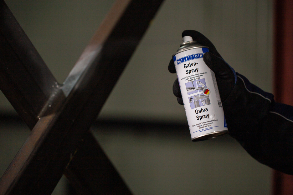 Galva Spray este un strat de protectie permanenta ce poate fi aplicat tuturor suprafetelor metalice. Acesta se usuca rapid, are o aderenta puternica si protejeaza impotriva ruginii si a coroziunii. Spray-ul este rezistent la apa sarata si apa dulce precum si la temperaturi de pana la +300 °C. Dupa mai mult de 450 de ore in ceata salina, conform testului de verificare DIN EN 9227, piesele metalice acoperite cu WEICON Galva Spray nu au aratat nici un semn de coroziune. Spray-ul poate fi utilizat pentru retusuri ale pieselor zincate la cald datorita culorii asemanatoare, ca si grund antirugina foarte eficient, de ex. la vopsirea caroseriilor auto, ca si strat de acoperire a sectiunilor sudate sau gaurite, ca si strat conductor intermediar la sudarea electrica in puncte.