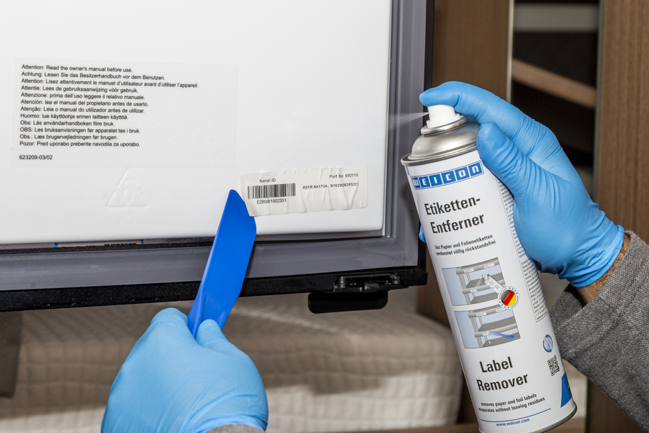 Spray-ul WEICON de indepartat etichete indeparteaza rapid si cu usurinta etichetele de hartie si resturile de adezivi sensibili la presiune, acrilati si pe baza de cauciuc. Spray-ul de indepartat etichete poate fi utilizat pe numeroase suprafete precum sticla, metalul, lemnul, folia si plasticul. Spray-ul WEICON de indepartat etichete indeparteaza usor si sigur etichetele adezive, etichetele de pret (de ex. dupa etichetare incorecta), etichetele cu adresa si cele cu descrierea produsului, etichetele de marcaj si resturile de autocolante. indeparteaza si resturile de adeziv de la etichetele transparente tip folie de ex. vinietele lipite pe parbrize.