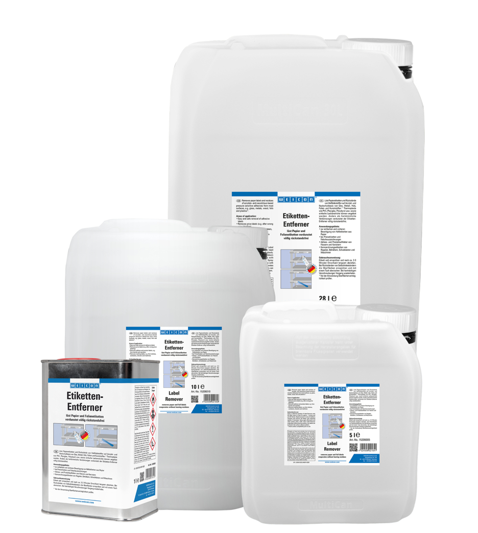 Lichidul WEICON de indepartat etichete indeparteaza rapid si cu usurinta etichetele de hartie si resturile de adezivi sensibili la presiune, acrilati si pe baza de cauciuc. Lichidul de indepartat etichete poate fi utilizat pe numeroase suprafete precum sticla, metalul, lemnul, folia si plasticul. WEICON indepartare etichete dezlipeste usor si sigur etichetele adezive, etichetele de pret (de ex. dupa etichetare incorecta), etichetele cu adresa si cele cu descrierea produsului, etichetele de marcaj si resturile de autocolante. indeparteaza si resturile de adeziv de la etichetele transparente tip folie de ex. vinietele lipite pe parbrize.