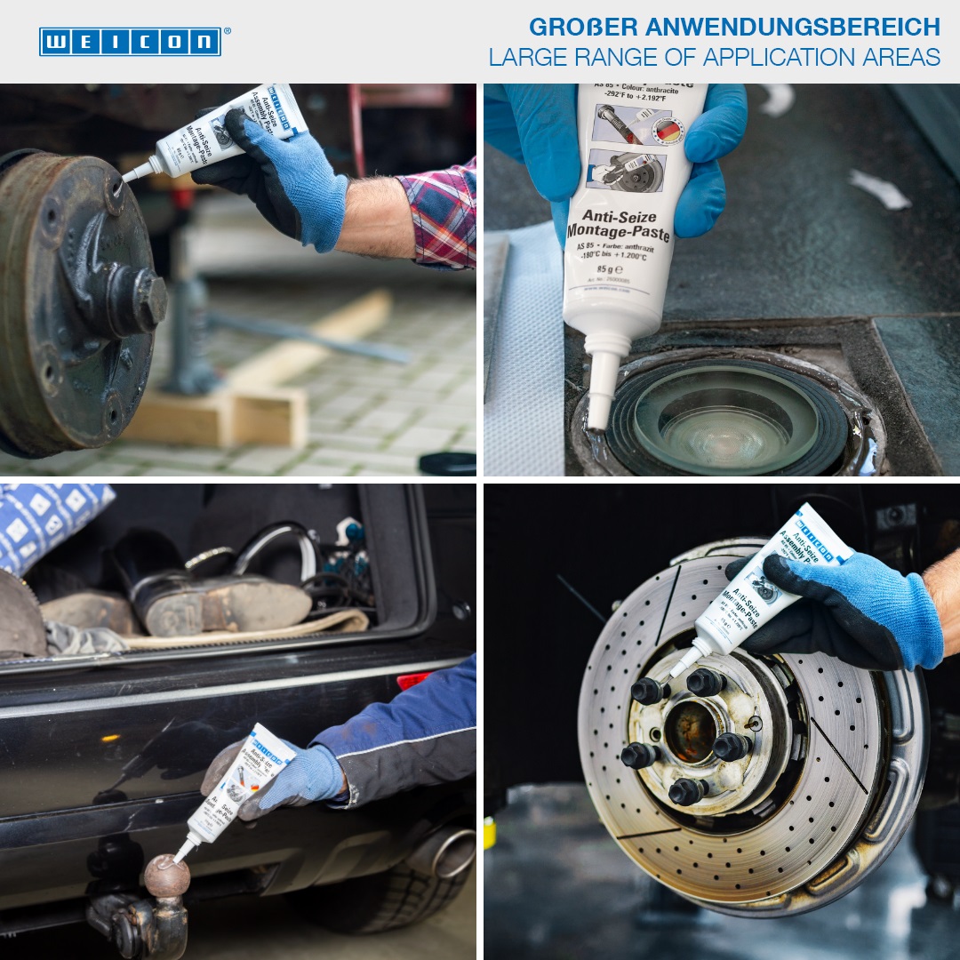 WEICON Anti-Seize este utilizat ca si agent de protectie, separare si lubrifiere pentru piesele supuse la solicitari mari. Echilibrul ideal intre continutul de solide si aditivii selectionati permite utilizarea in aplicatii multiple. WEICON Anti-Seize protejeaza impotrva coroziunii, griparii si uzurii, efecte stick-slip (alunecare-gripare), oxidarii, coroziunii de frecare si reactiilor electrolitice („sudura la rece “).