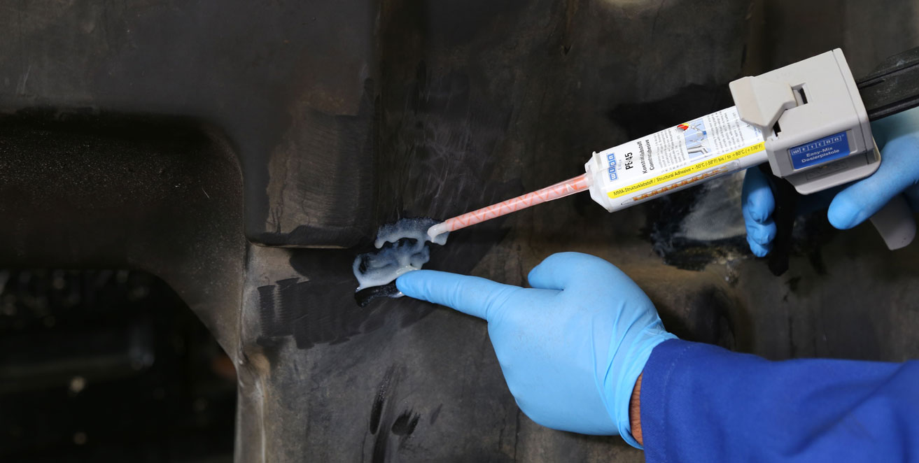 Structural acrylic adhesives are based on MMA (methyl methacrylate) and show high adhesive strength on fibre composites, many plastics, metals, and many other materials. Thanks to their high viscosity, these adhesives can also be applied on vertical surfaces.