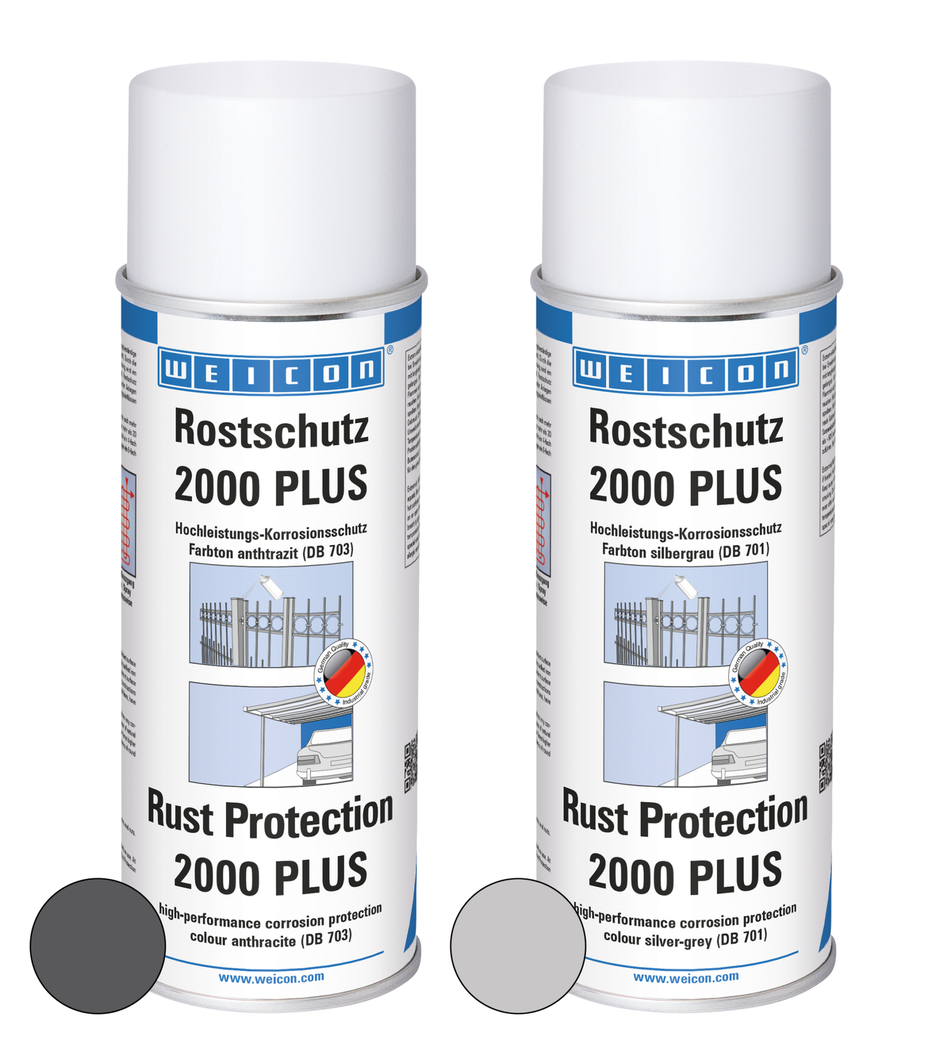 Spray-ul de protectie antirugina 2000 PLUS este o acoperire de suprafata pe baza de oxid feric (hematit) cu rezistenta deosebita la coroziune si intermperii. Prin utilizarea unor pigmenti de oxid feric de inalta puritate sub forma de fulgi se obtine o protectie a suprafetei permanenta, hidrofuga si rezistenta la intemperii. Produsul se utilizeaza pentru toate tipurile de structuri si ansambluri metalice la care se doreste asigurarea unei protectii prelungite si in acelasi timp estetice impotriva conditiilor extreme de mediu si intermperiilor. Spray-ul de protectie antirugina WEICON 2000 PLUS se poate folosi la constructii de hale si alte structuri din otel, la balustrade din fier, stalpi cu zabrele, garduri, maini curente si balcoane, porti glisante, corpuri de iluminare exterioare si in orice alte locuri unde exista risc de coroziune ridicat.