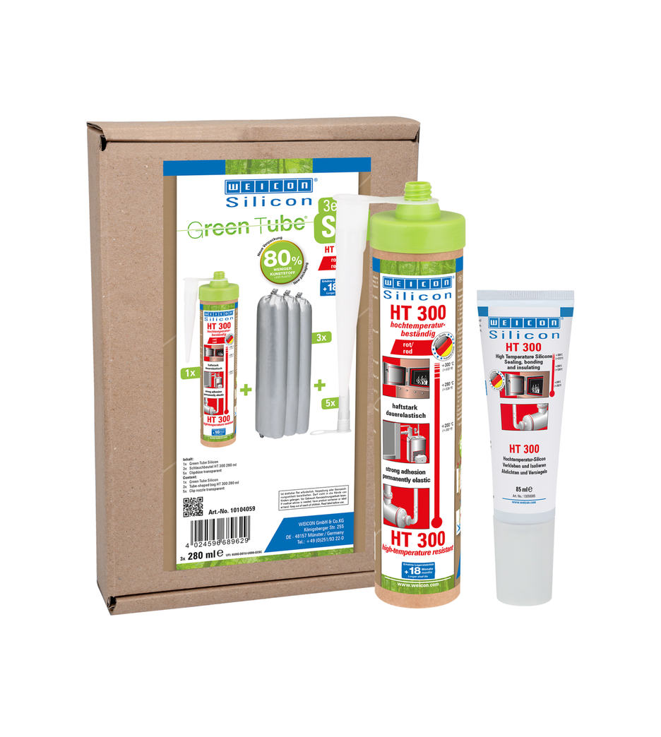 Adezivul si etansantul WEICON HT 300 este rosu, rezista la temperaturi inalte (+300 °C), nu contine solventi, este puternic si are o structura reticulara de tip acetat. Rezista la intemperii, fenomene de imbatranire si agenti chimici si este extrem de elastic (alungirea la rupere de aprox. 300%) HT 300 se preteaza in mod special la realizarea unor lipiri expuse la caldura, avand o capacitate foarte buna de etansare si aderenta la otel, aluminiu, sticla, ceramica si multe alte materiale. HT 300 poate fi utilizat la furnale industriale, sisteme de gaze de ardere, instalatii de incalzire, sisteme de exhaustare a gazelor, instalatii de incalzire si multe altele.