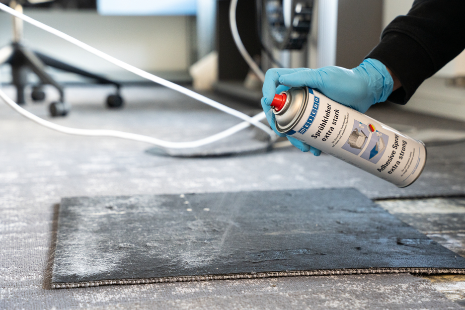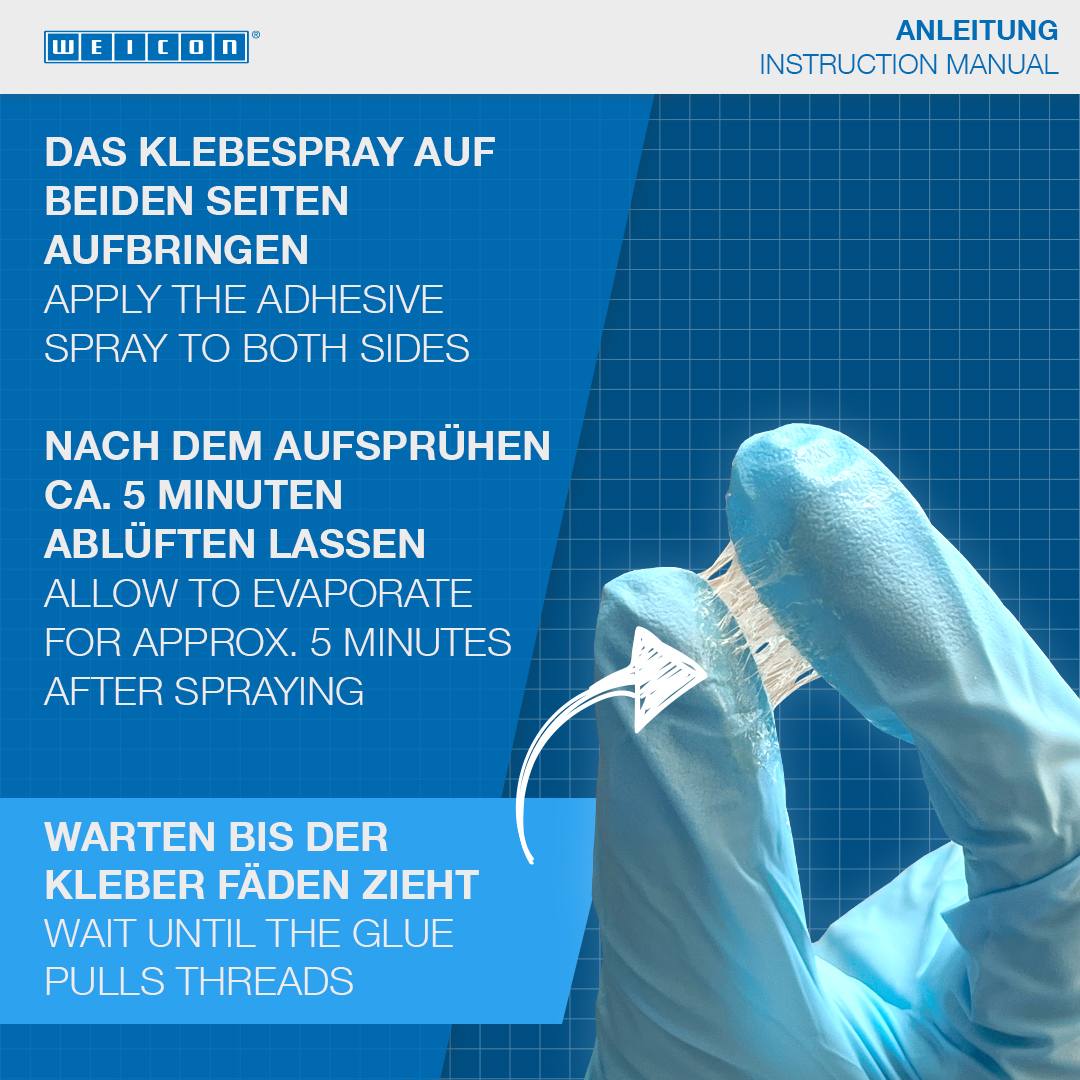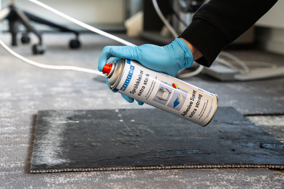 Spray-ul adeziv foarte puternic are la baza o formula speciala care permite realizarea unor lipiri puternice si permanente pe suprafete dure si inegale. Spray-ul adeziv foarte puternic WEICON poate fi utilizat pentru lipirea fetrului, a foliei de PVC, imitatiilor de piele, carpetelor, materialelor plastice, cartonului, cauciucului celular si spongios, materialelor izolatoare, spumei moale,vinilului, pielii, cauciucului, metalului si lemnului. Se preteaza si la lipirea unor suprafete mari.
