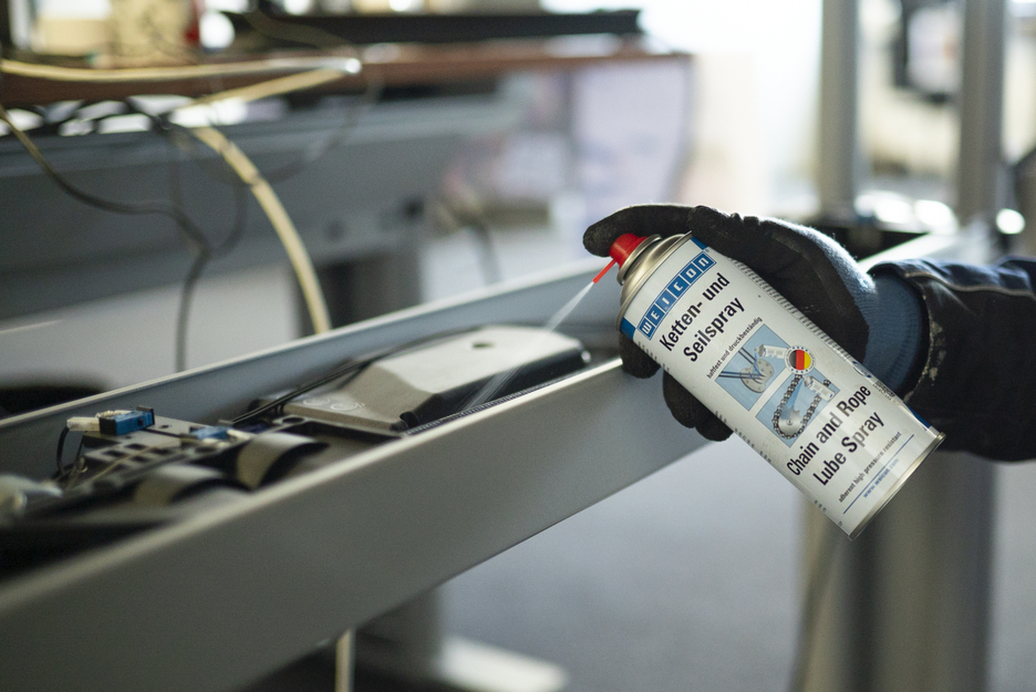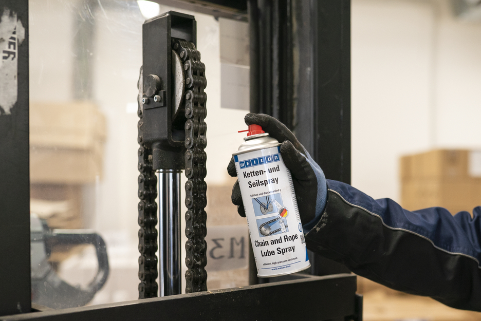 Spray-ul WEICON de lubrifiere lanturi si sufe este un lubrifiant sintetic, transparent, foarte aderent, pentru lubrifierea interna si externa a tuturor tipurilor de lanturi si cabluri metalice supuse la solicitari mari. Spray-ul de lubrifiere lanturi si sufe prezinta o aderenta deosebita, are proprietati excelente de capilaritate, este fonoabsorbant (elimina zgomotele) si hidrofug (respinge apa), previne elongatia, frecarea si uzura. Spray-ul WEICON de lubrifiere lanturi si sufe poate fi utilizat pentru toate tipurile de lanturi si sufe, roti dintate si angrenaje melcate, parti mobile cu miscare rapida, articulatii si cuplaje, role, rulmenti cu bile si angrenaje cu arc, in multiple aplicatii industriale.