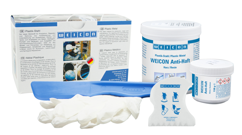 WEICON Anti-lipire este un sistem de rășini epoxidice lichid, gri, bicomponent cu particule ceramice solide pentru protecția suprafețelor supuse la solicitări mari împotriva agenților chimici agresivi, a coroziunii și a uzurii mecanice. A fost special dezvoltat pentru procesarea cu un sistem ce funcționează la presiune mică. WEICON Anti lipire conține aditivi speciali care creează un efect anti-lipire și alunecare (anti-stick-slip). Sistemul de protecție la uzură are o bună rezistență chimică și termică. Nu conține solvenți și se întărește aproape fără contracție. WEICON Anti-lipire este aplicat direct pe piese după o pregătire exemplară a suprafețelor prin sablare. Stratul de acoperire aderă foarte bine la diverse suprafețe și este potrivit pentru a mare varietate de componente cum aqr fi conductele, pompele și sistemele de exhaustare. În orice situație însă se recomandă efectuarea unor testări preliminare în condițiile specifice aplicației practice, mai ales dacă piesele componente sunt expuse suplimentar la temperaturi ridicate sau la solicitări mecanice. WEICON Anti-Stick este potrivit ca atare sau în combinație cu unul dintre celelalte tipuri de WEICON Plastic Metal pentru un sistem de acoperire antiaderentă.