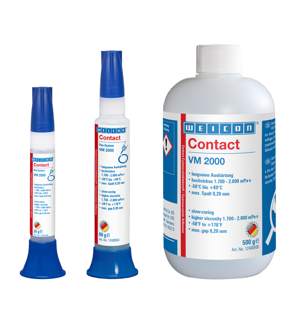 WEICON Contact VM 2000 este potrivit pentru toate tipurile de îmbinări metalice și poate fi utilizat și pe produse absorbante și poroase. Contact VM 2000 poate fi utilizat în industria metalurgică, în construcția de mașini, în realizarea de dispozitive casnice și industriale și în multe alte aplicații.