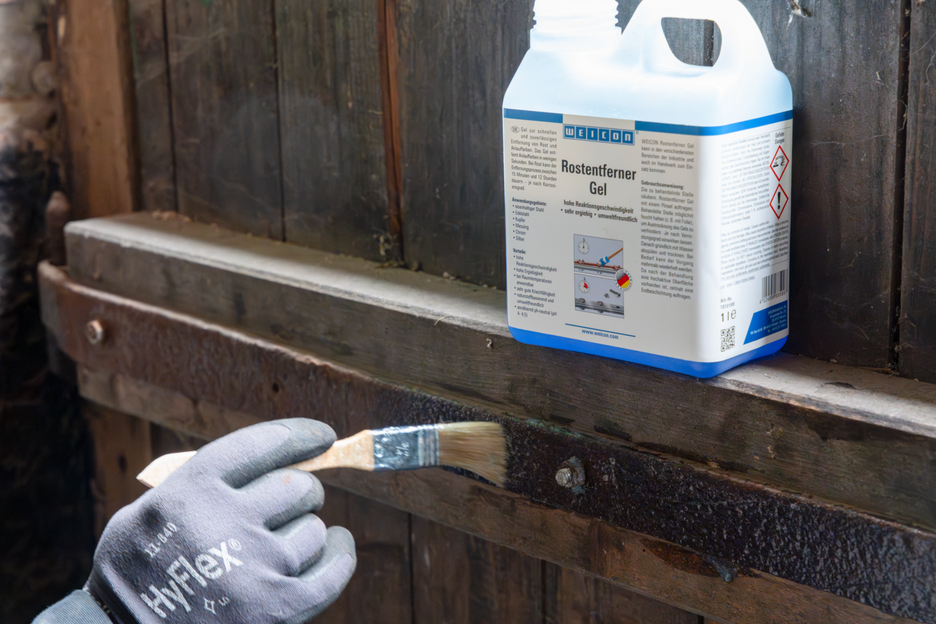 Gel pentru îndepărtarea rapidă și sigură a ruginii și a petelor. Gelul pentru îndepărtarea ruginii poate fi utilizat pe oțel feros, oțel inoxidabil periat, cupru, alamă, crom și argint. Are o viteză mare de reacție, penetrează foarte bine și este foarte economic. Gelul îndepărtează petele în doar câteva secunde. În cazul ruginii, procesul de îndepărtare poate dura între 15 minute și 12 ore - în funcție de gradul de coroziune. Gelul albastru nu trebuie să fie încălzit pentru aplicare, ci poate fi utilizat la temperatura camerei. Această soluție se bazează pe substanțe naturale, nu conține solvenți și asigură îndepărtarea delicată a ruginii. Gelul pentru îndepărtarea ruginii WEICON poate fi utilizat în diverse domenii ale industriei și comerțului.